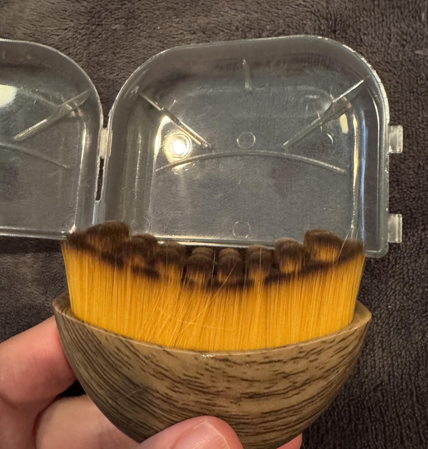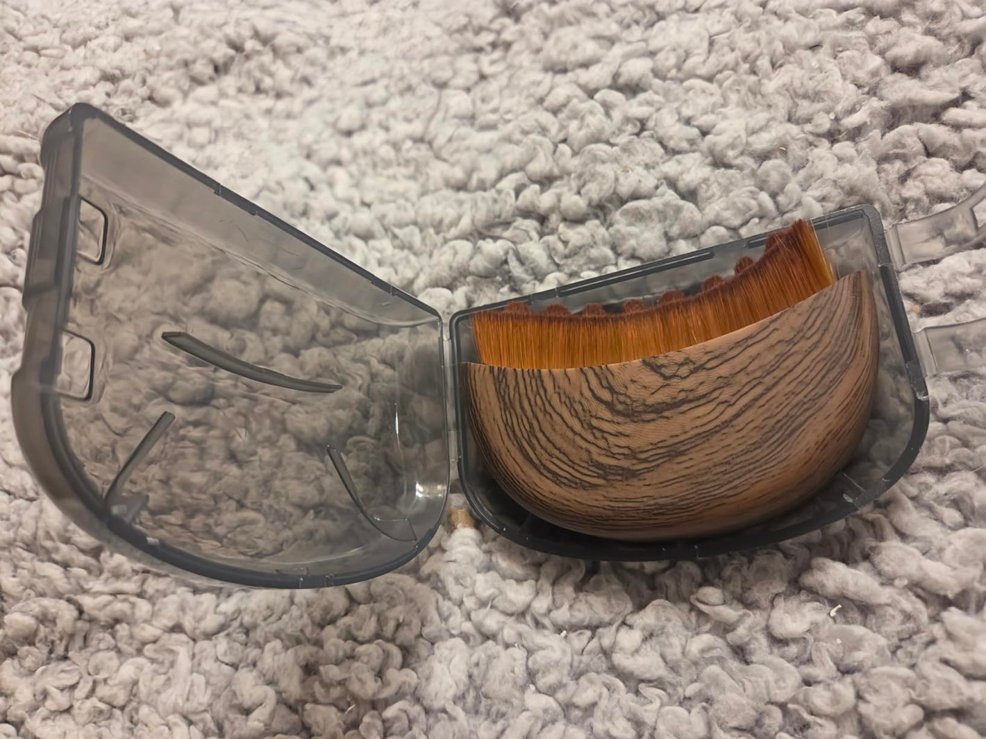 "I'm happy to have ordered this facial lymphatic drainage brush. As you can see in the pictures, it arrived in a cute container that closes tightly, which is very helpful. You put that brush on your face and would want to keep it clean and free of dust and debris when not using it, and the container helps with that. The shape of the brush handle is curved and ergonomic, which makes it very easy to hold for extended periods of time. The bristles are very very soft and silky. It was a pleasure to use it on my face without scratching it or causing abrasions. The bumps formed by the bristles on top are also soft and rounded and pleasant to brush on your face. I would highly recommend this brush for people who like to do facial massage and lymphatic drainage.”